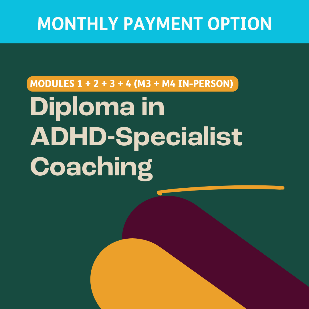 Diploma in ADHD-Specialist Coaching (M1 + M2 + M3 + M4: IN-PERSON M3 + M4) (PAYMENT PLAN)